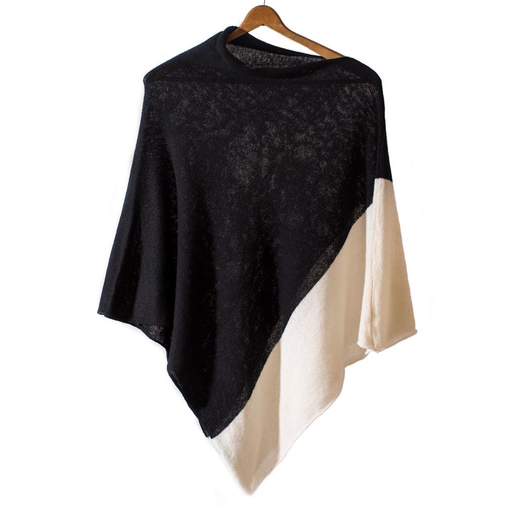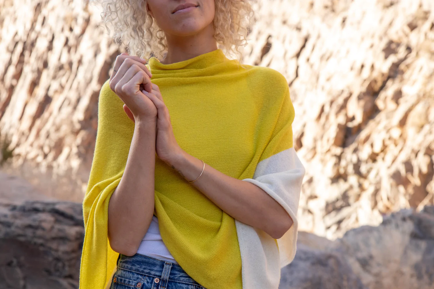 Nº 576: Our coveted Cashmere Poncho with a two-toned twist. Striking combinations transform a classic into a statement piece. We'll be changing colors with the seasons for this always limited-edition poncho. Throw it on and there you are: outside the Santa Fe Opera, your beautiful poncho floating in the desert breeze.